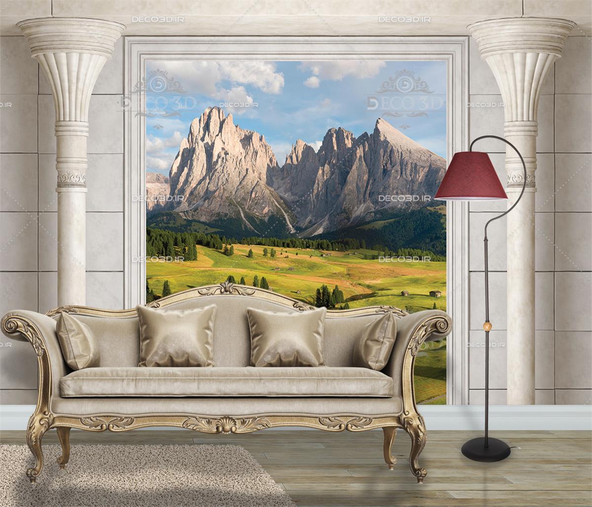 قاب عکس کوههای آلپ کومار با ستون های سنگی 3 بعدی