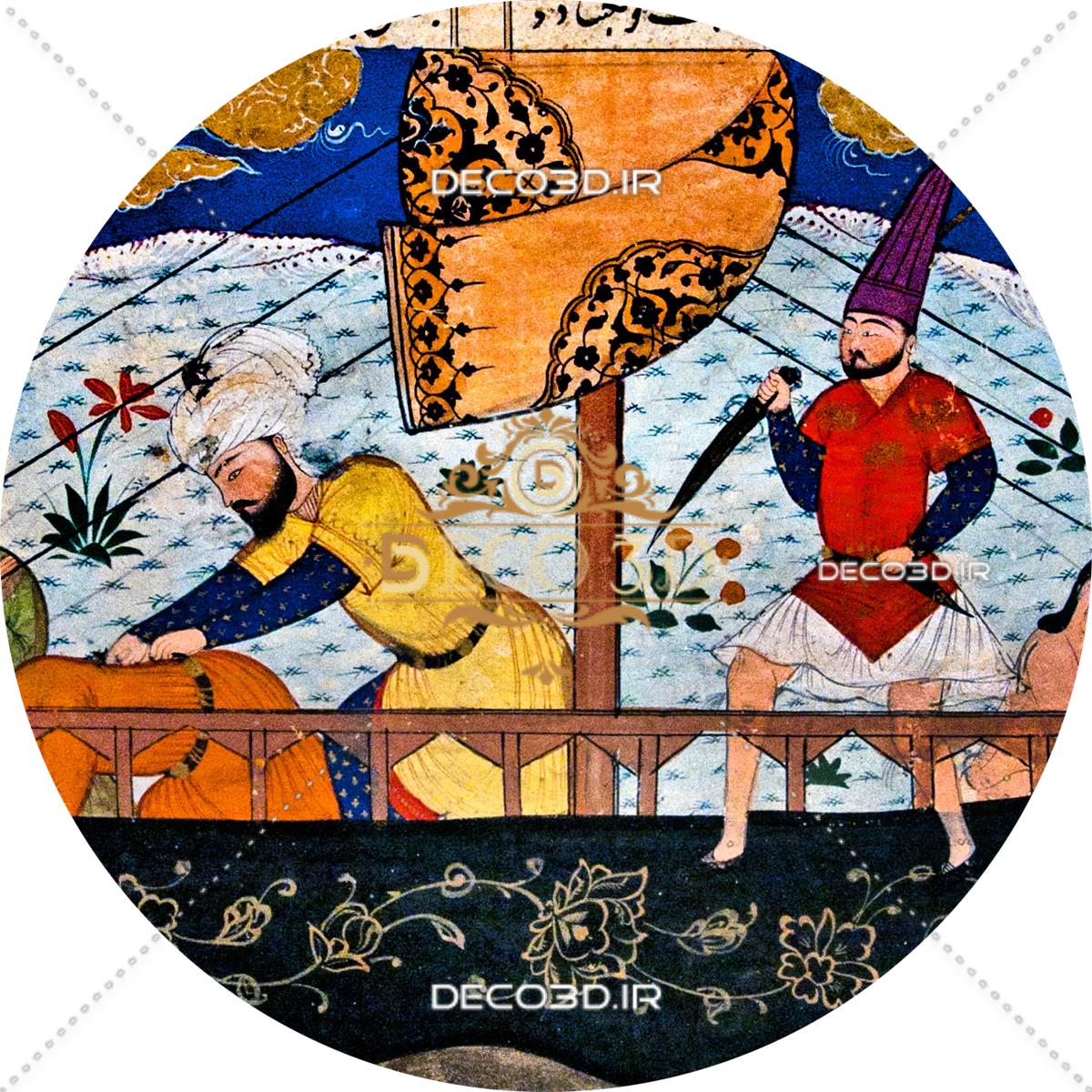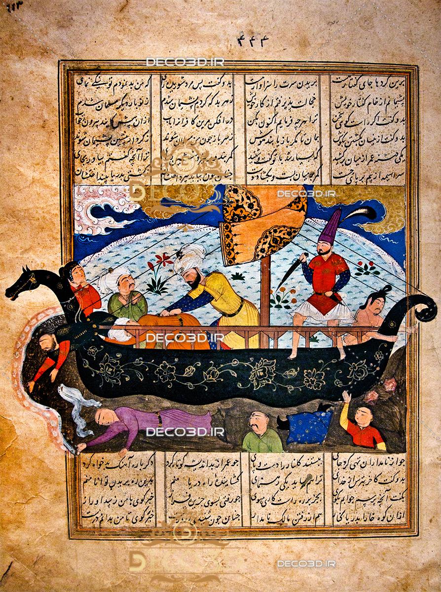 نقاشی مینیاتوری اثر استاد فرشچیان (عمر کفار را به دریا می افکند )