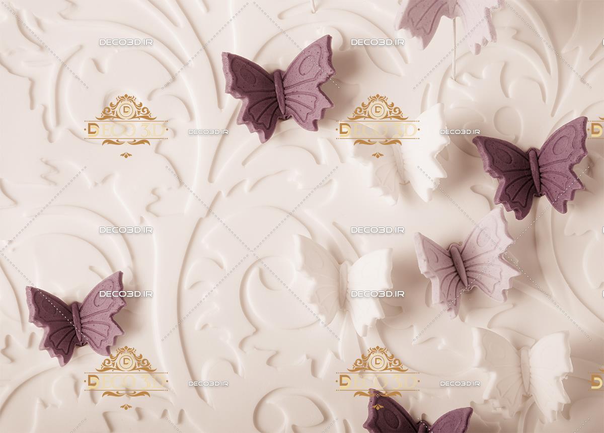 پرچین چوبی با گلهای صورتی و پروانه ها