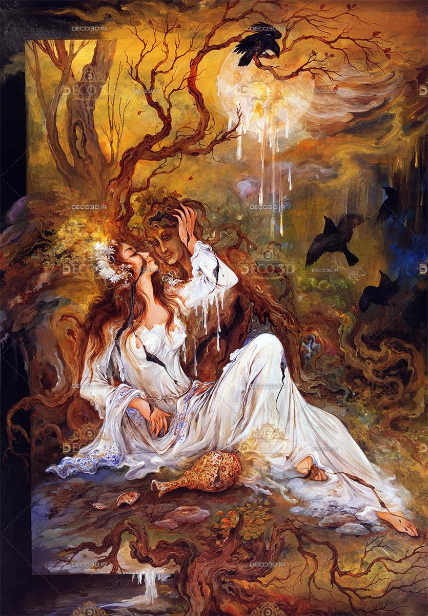 نقاشی مینیاتوری ایرانی اثر استاد فرشچیان ( حرارت عشق )