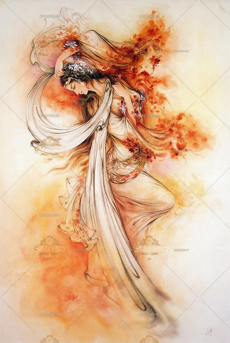 نقاشی مینیاتوری ایرانی اثر استاد فرشچیان ( زن زیبا )