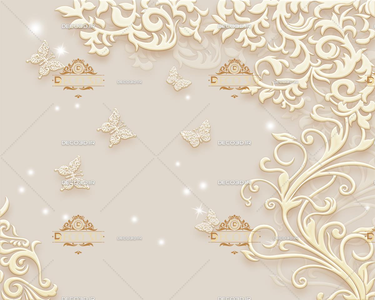 نقش برجسته گل و پروانه
