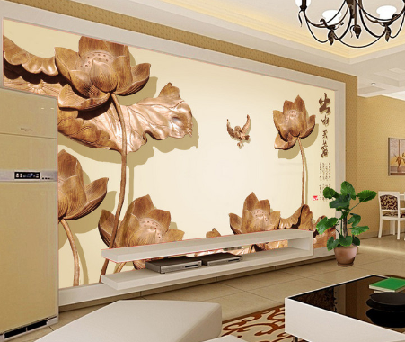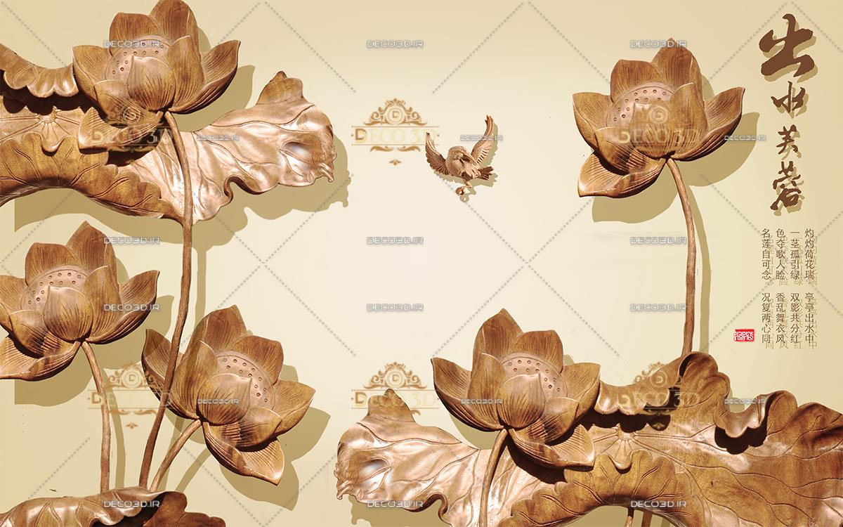گل ها و قوهای طلایی در دریاچه با حروف شرقی