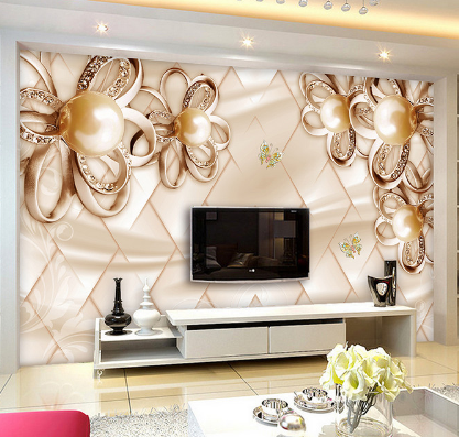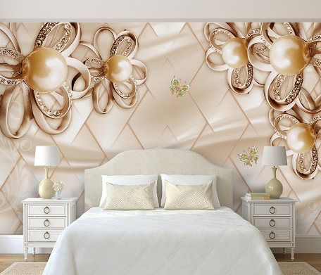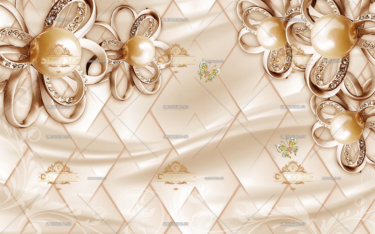 گلهای نگین دار و پروانه با زمینه گل و نقش لوزی