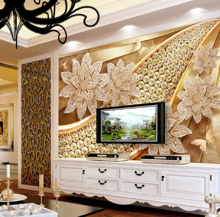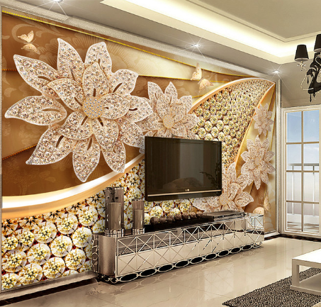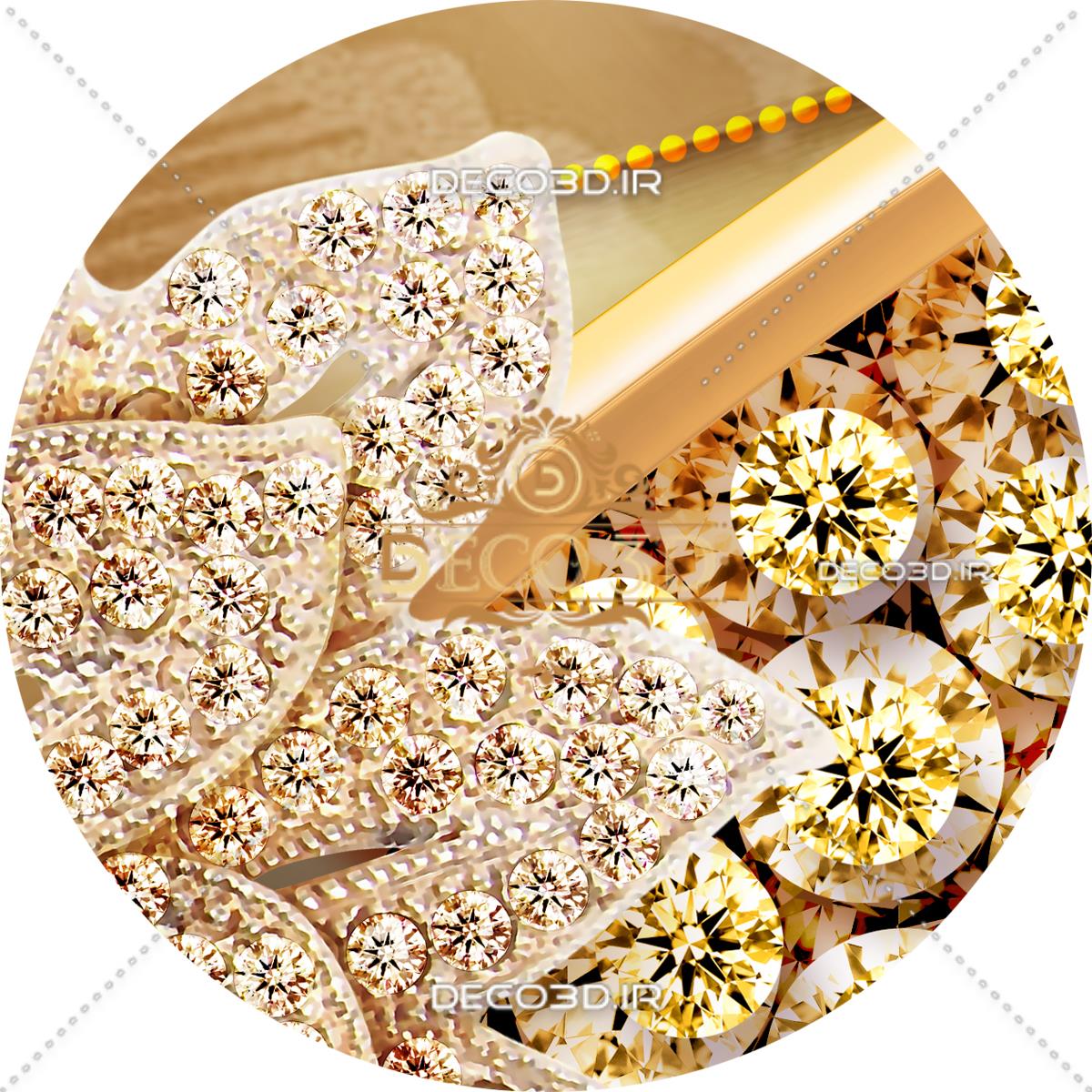 گل های الماسی براق با زمینه طلایی