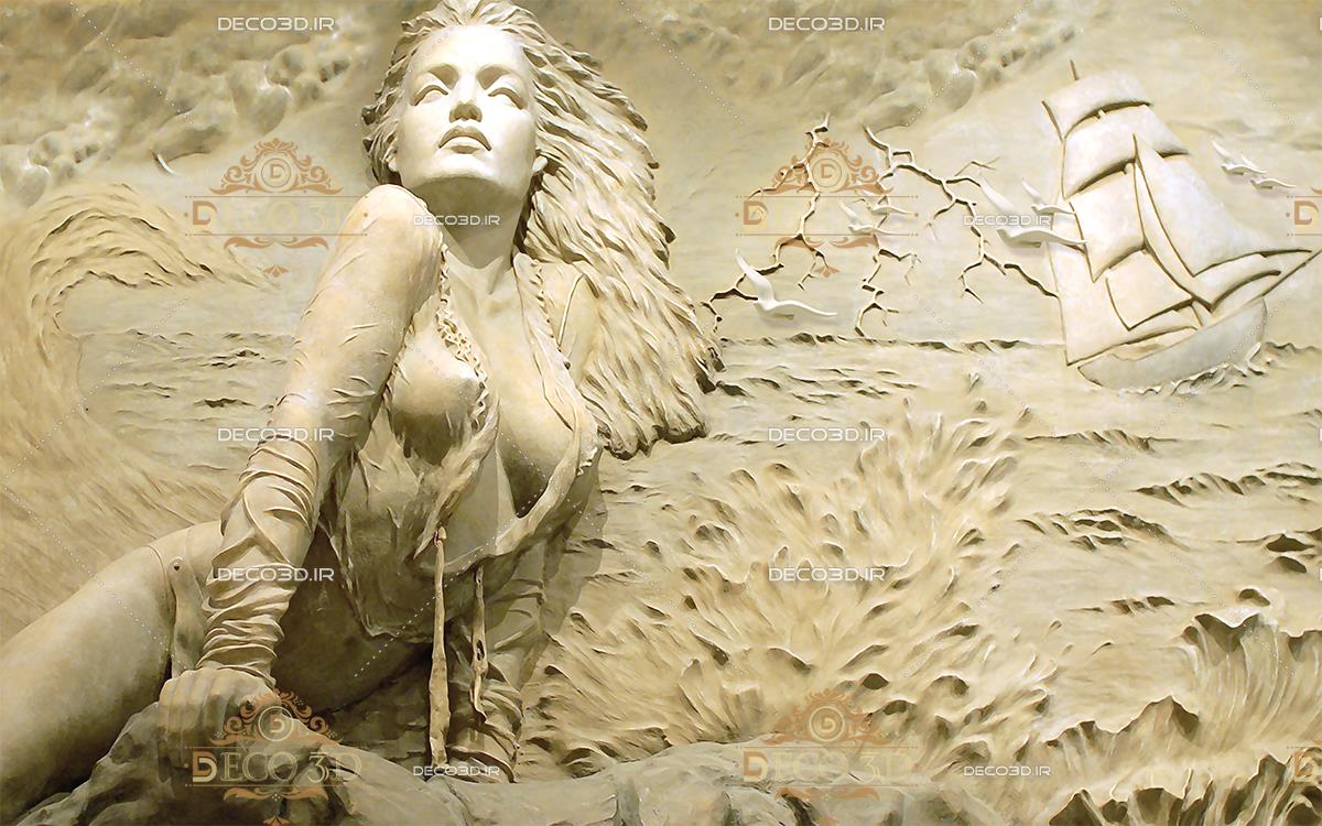 تصویر برجسته زن با پس زمینه دریای آشفته