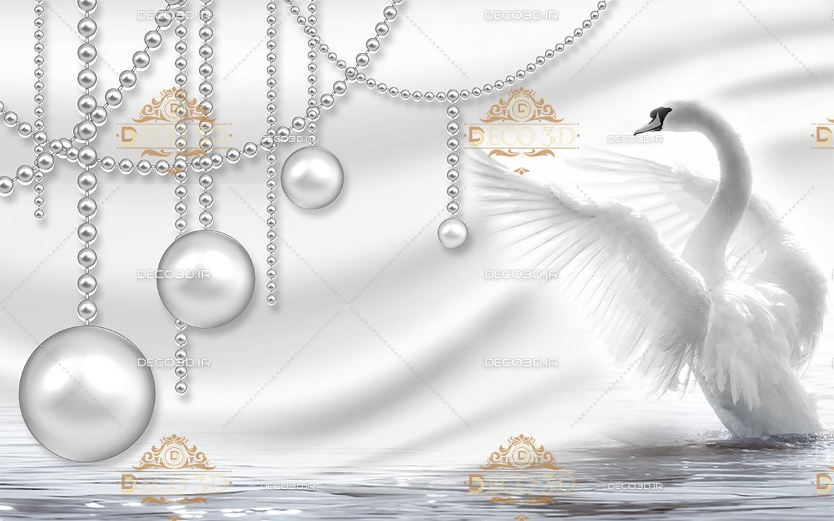 قو در آب با گوی های آویزان