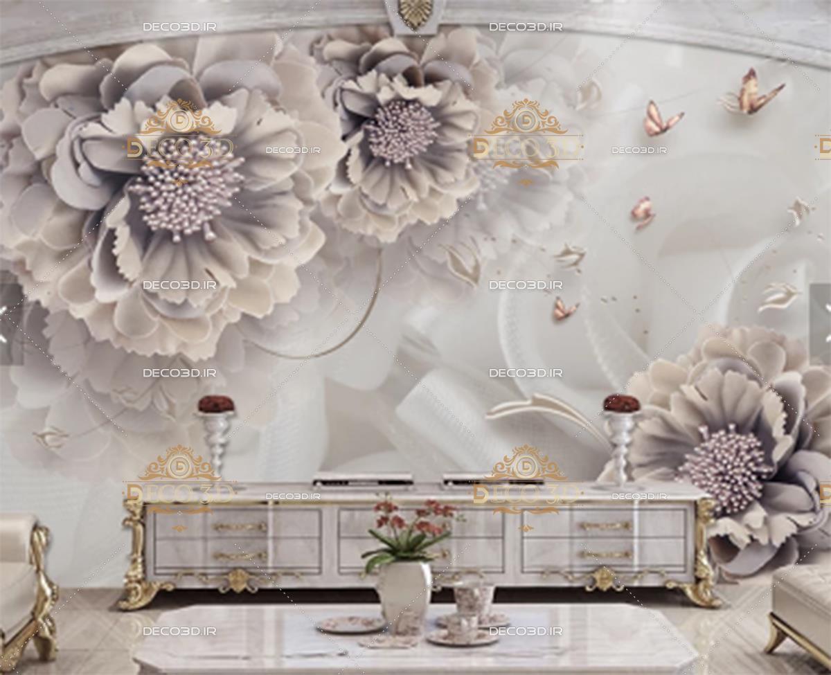 دیوار مواج سه بعدی و شاخه ی گل