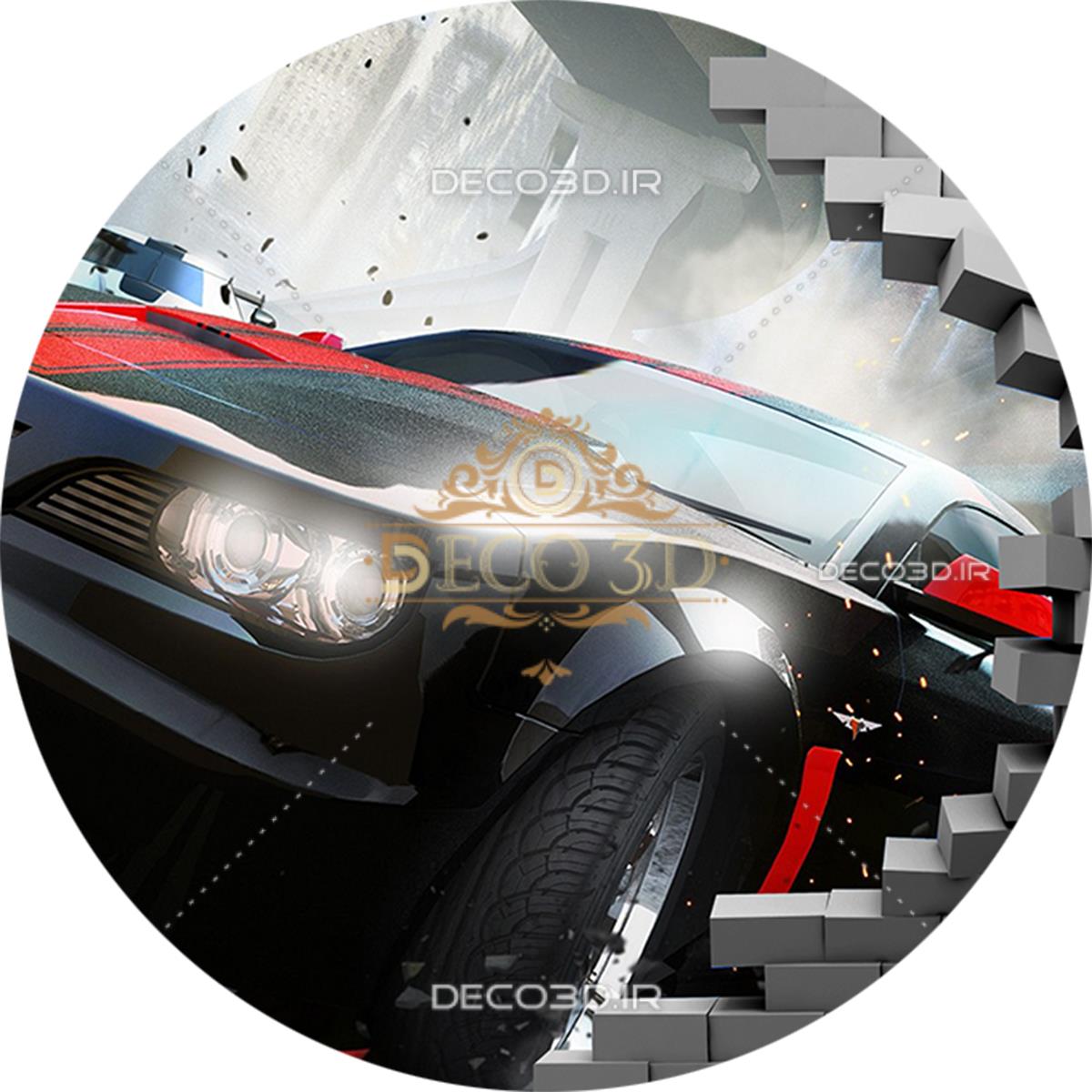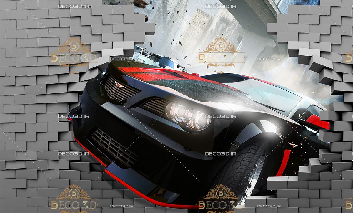 ماشین اسپورت و دیوار ریخته سه بعدی