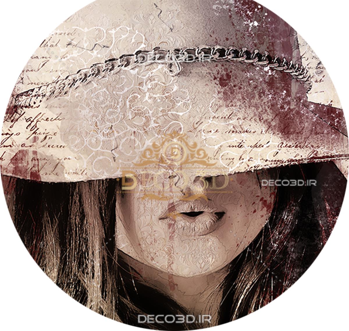 پرتره دختر زیبا و کلاه با پس زمینه نوشته لاتین