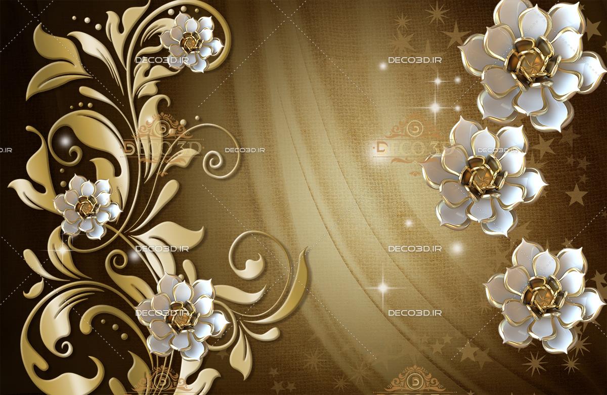 گل های نقره ای - طلایی با پس زمینه ستاره و نور