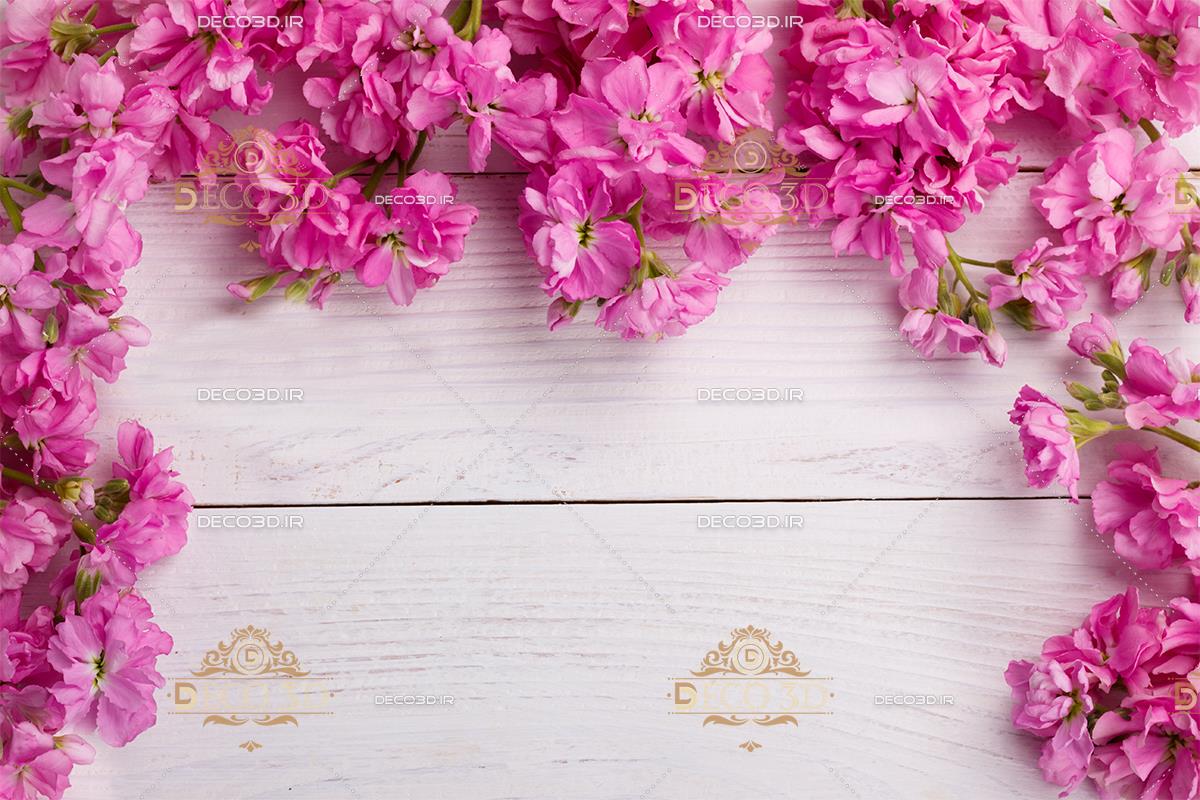 زمینه چوبی و گل های صورتی