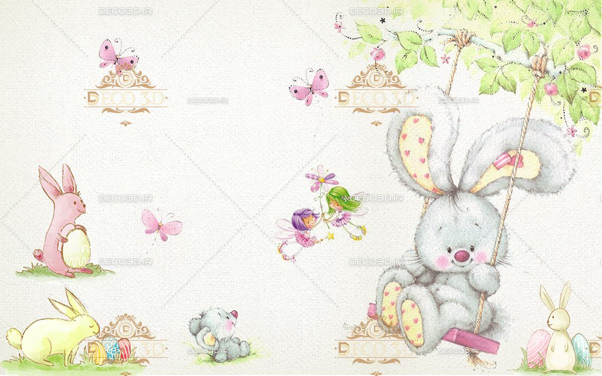 خرس کوچولو روی تاب و پروانه ها