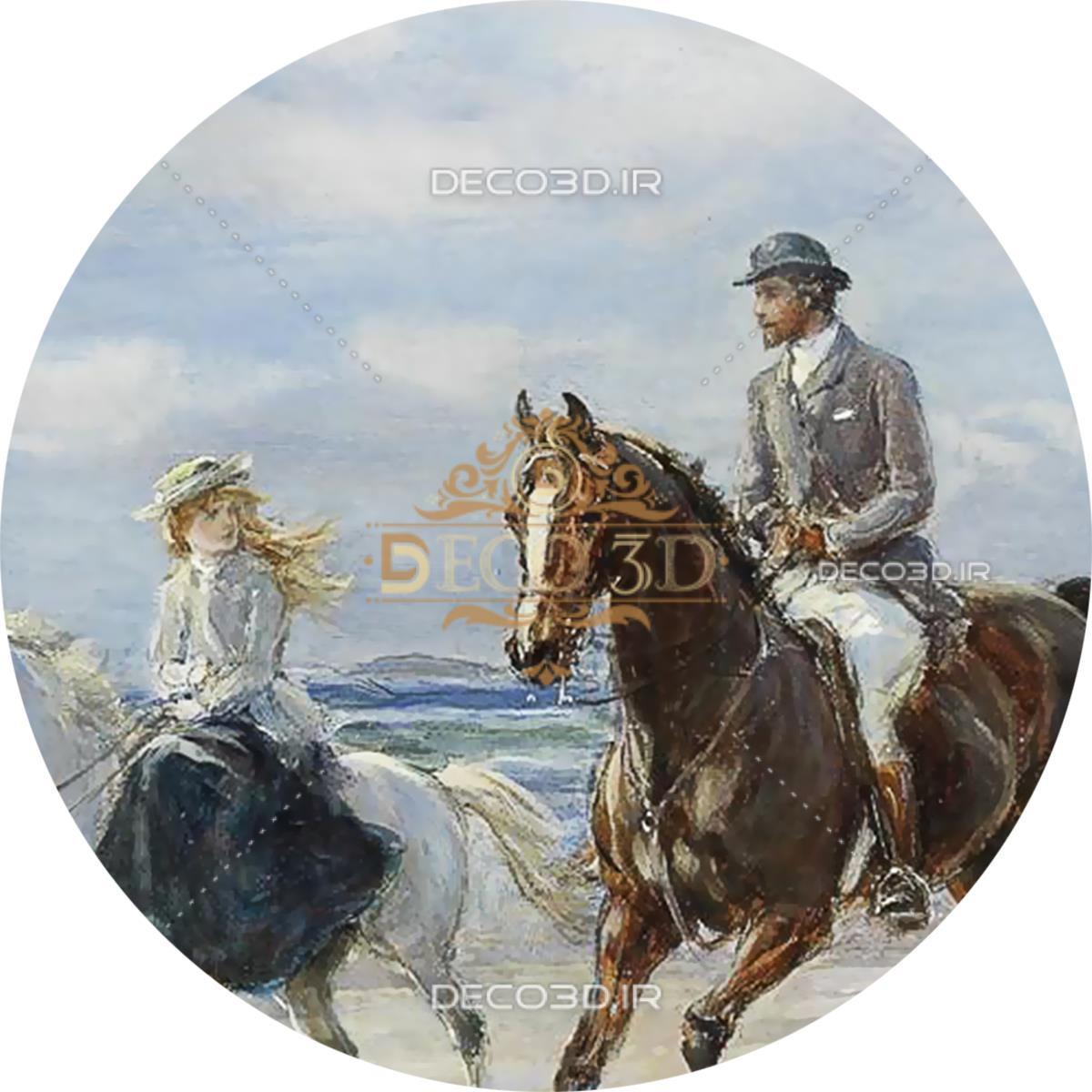 نقاشی کلاسیک سوارکاری کنار دریا