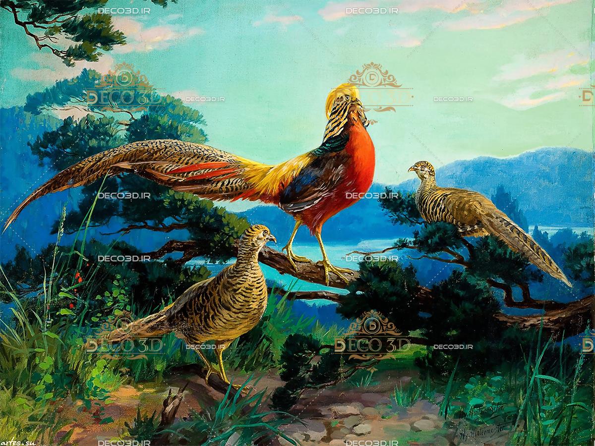نقاشی غربی پرنده ها در جنگل