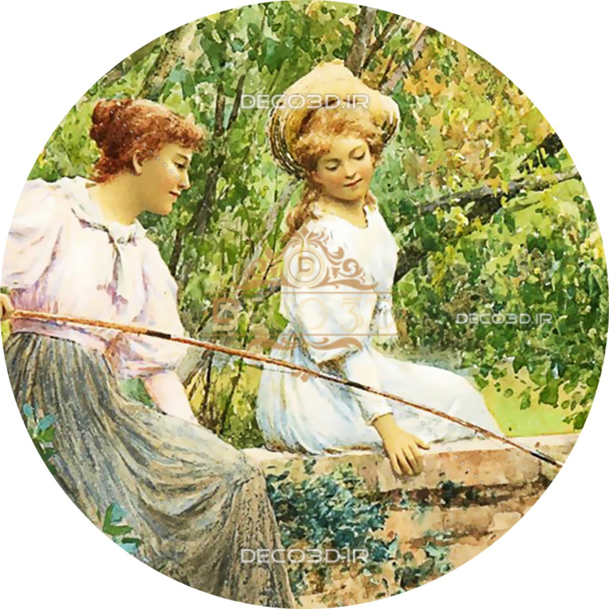 نقاشی کلاسیک زن و شوهر و بچه ها