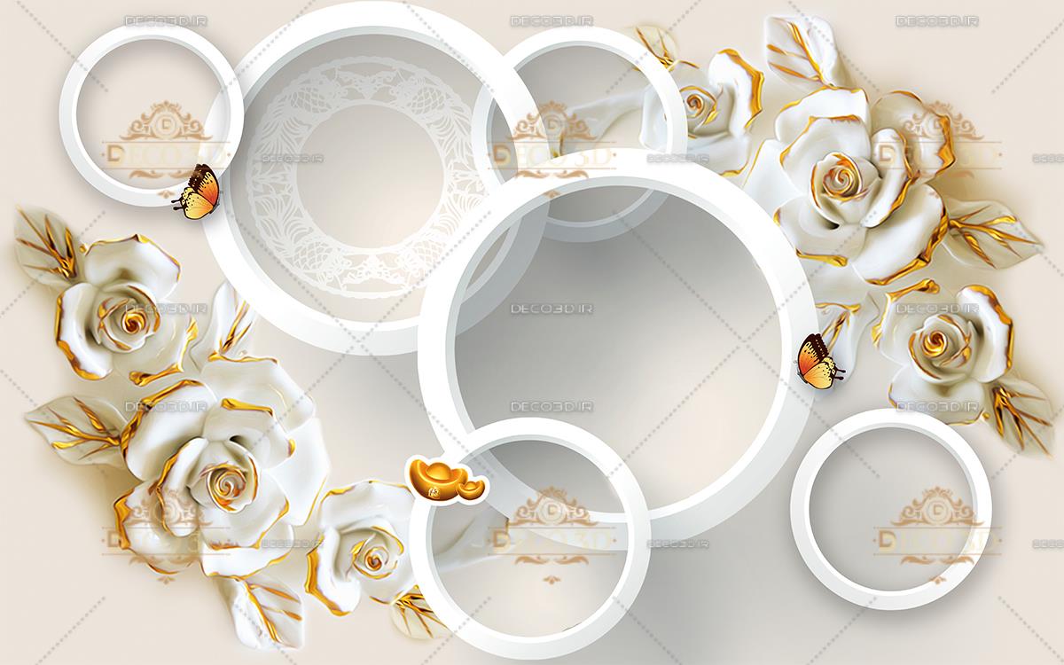 گلهای رز سه بعدی و حلقه و پروانه ها