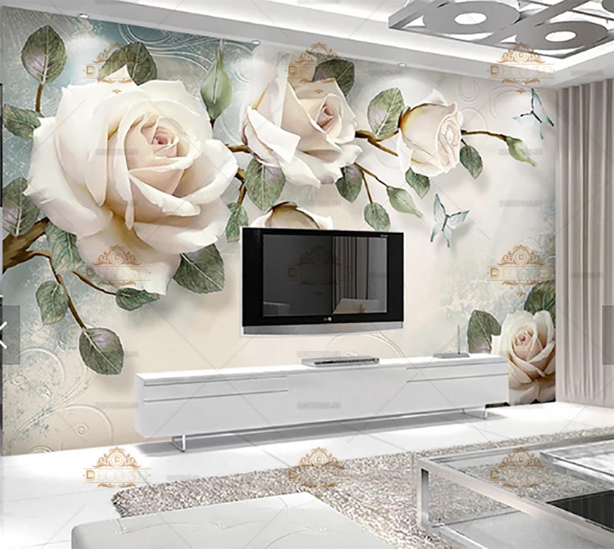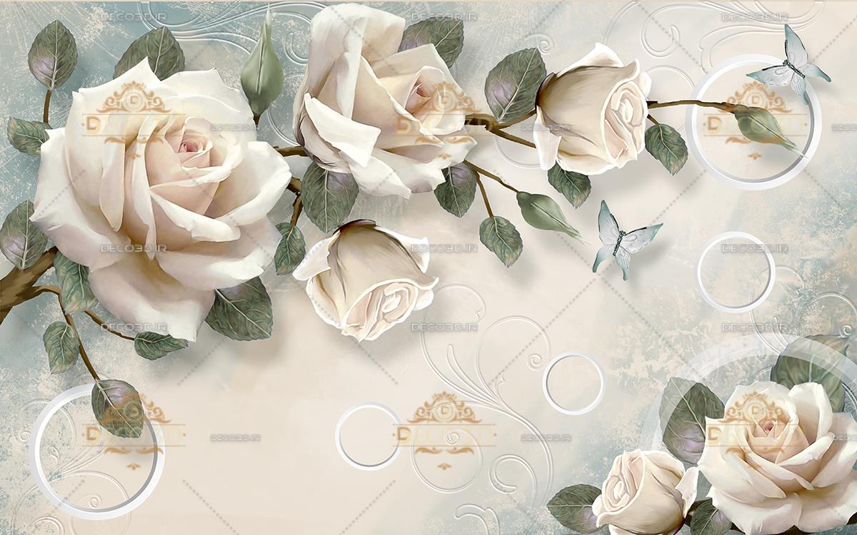 گلهای رز سه بعدی کرمی و پروانه