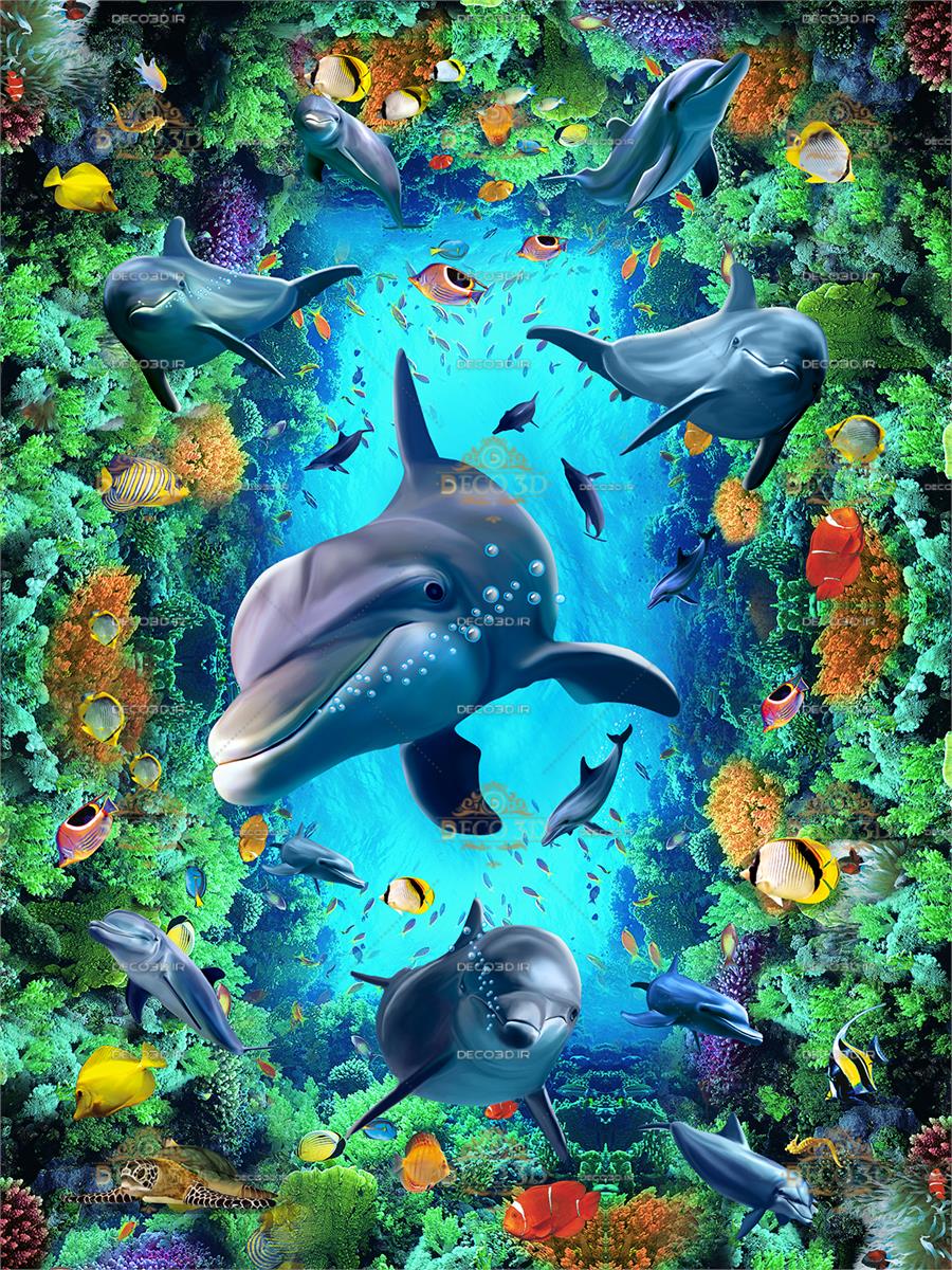 دلفین ها در دریای مملو از ماهی و گیاه دریایی