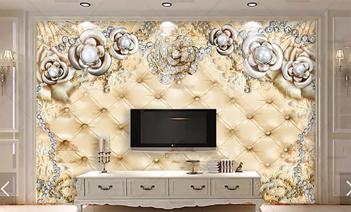گلهای جواهرنشان با زمینه طرح دار کرمی