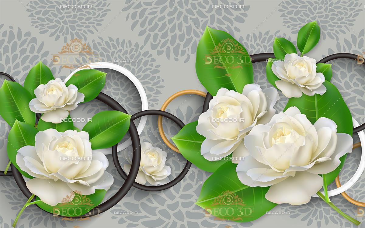 گلهای رز سفید و برگهای سبز و حلقه ها