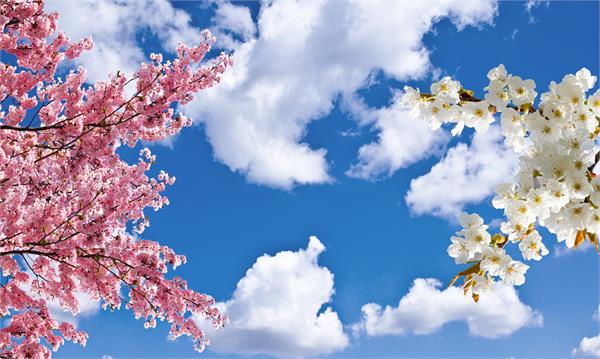 آآسمان آبی همراه با شکوفه های صورتی