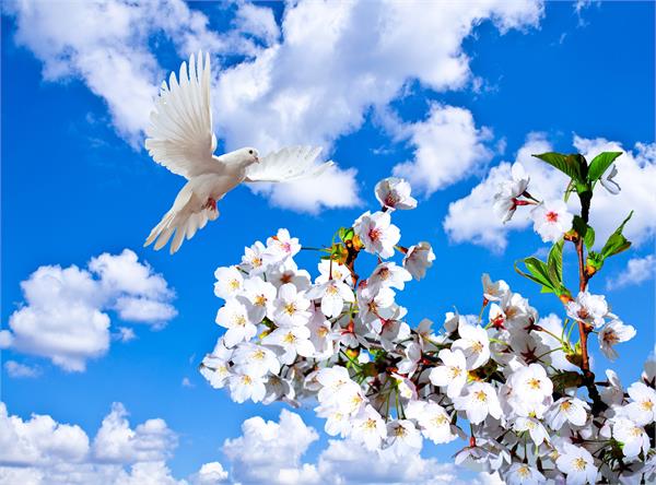 کبوتر در میان درخت نارگیل