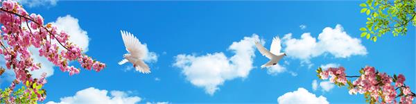 شکوفه ها و پرندگان در آسمان