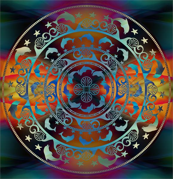 پترن دایره ای منقوش با زمینه رنگین