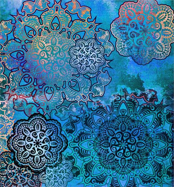پترن و پتینه آبی طلایی وطرح دایره ای مشکی