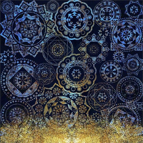 پترن و پتینه سرمه ای و دایره های اسلیمی آبی