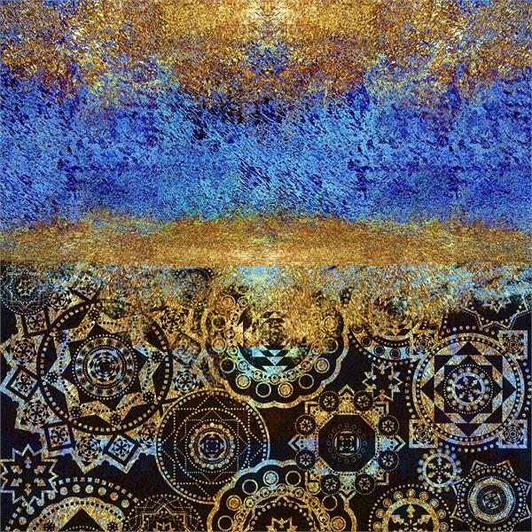 پترن و پتینه آبی طلایی وطرح دایره ای مشکی