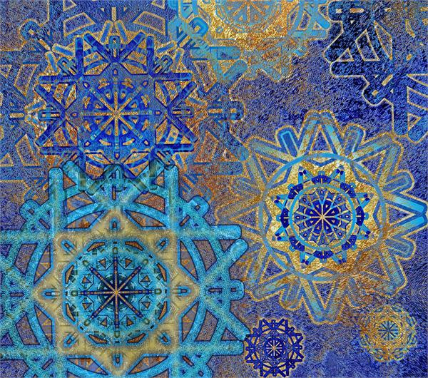 پترن طرح دایره های اسلیمی آبی و طلایی