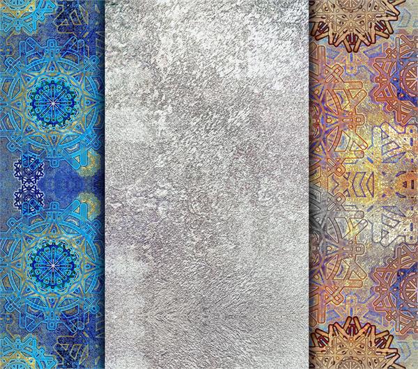 پتینه نقره ای و پترن ابی و زرد ونارنجی طرح دار