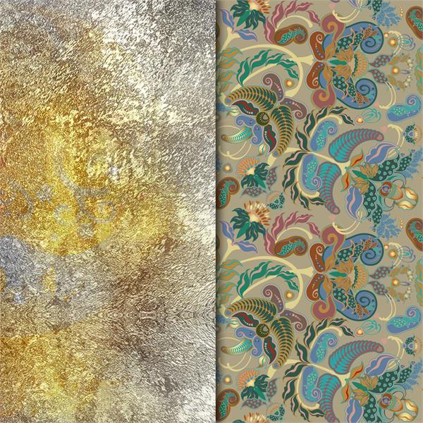 پس زمینه نقره ای و طلایی و پتینه گلهای اسلیمی