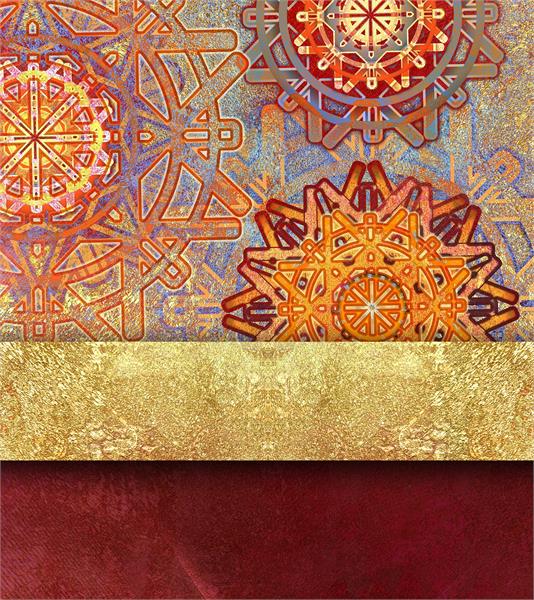 پترن قرمز و طلایی با نقوش هندسی دایره