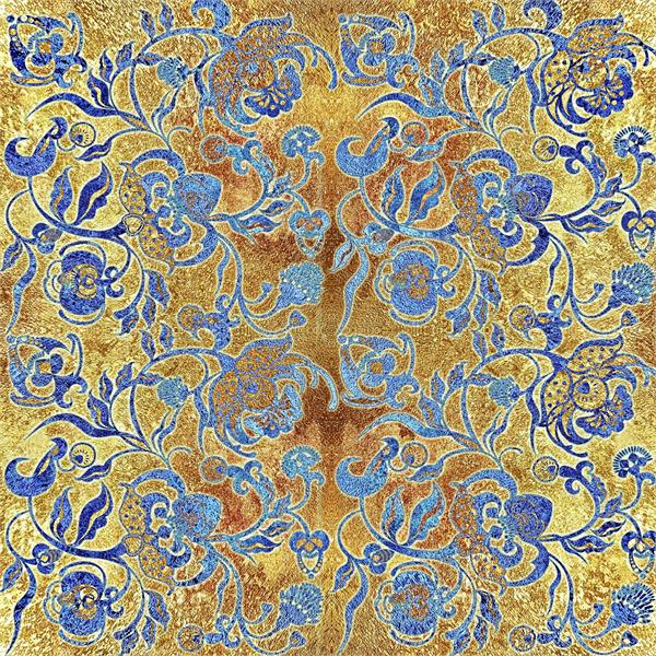 پتینه طلایی با نقوش گل و برگ آبی