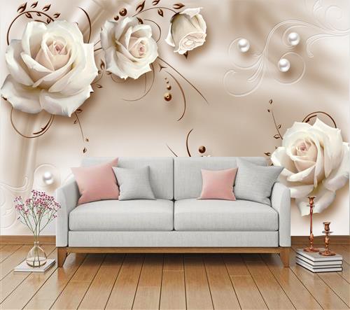 گلهای رز کرمی سه بعدی و مرواریدهای زیبا