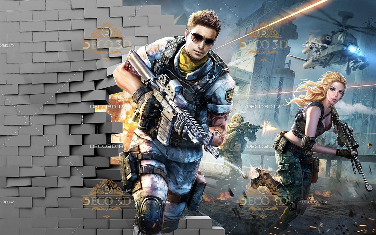 کارکترهای انیمیشنی در حال جنگ و دیوار ریخته