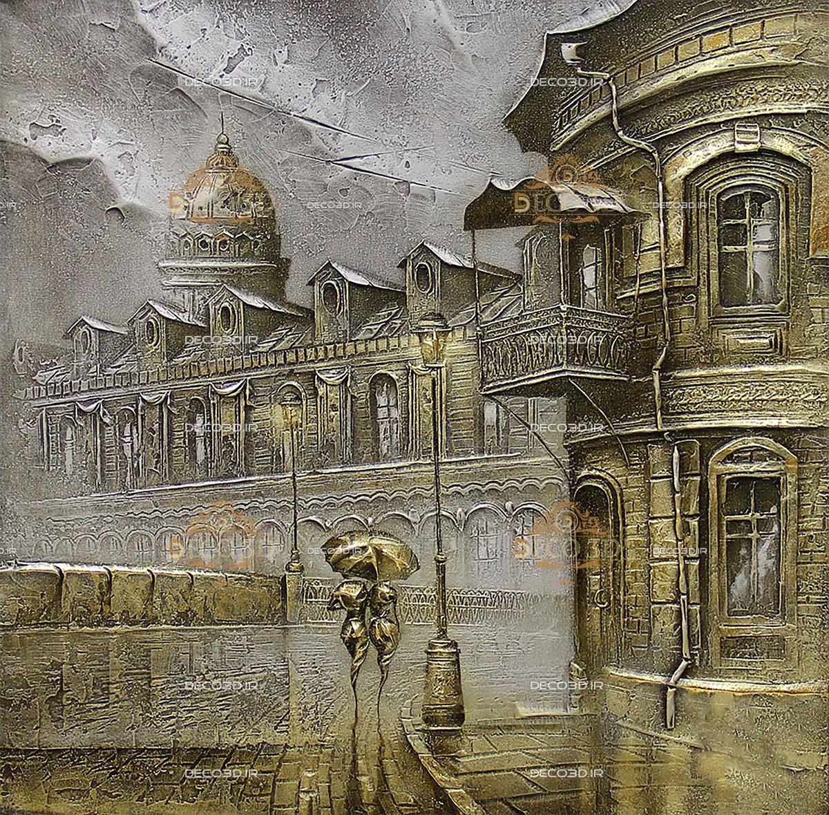 نقاشی غربی خاص با تکنیک فلز برجسته(منظره شهر)