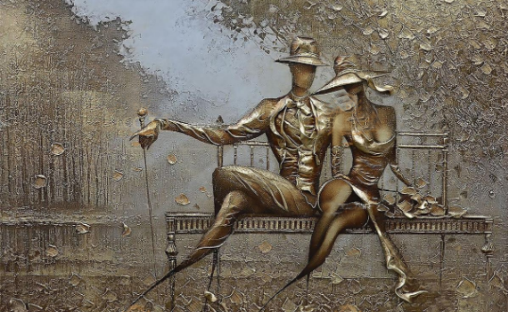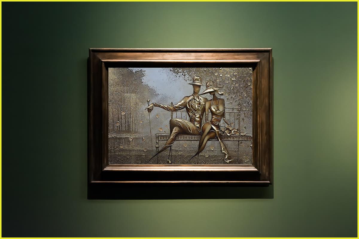 نقاشی غربی خاص با تکنیک فلز برجسته(گفتگوی زوج عاشق)
