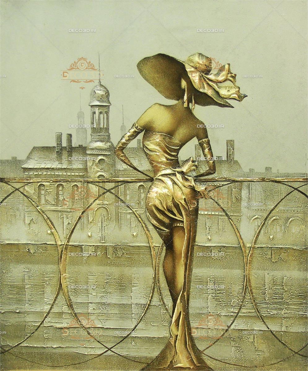 نقاشی غربی خاص با تکنیک فلز برجسته(زن روی پل )