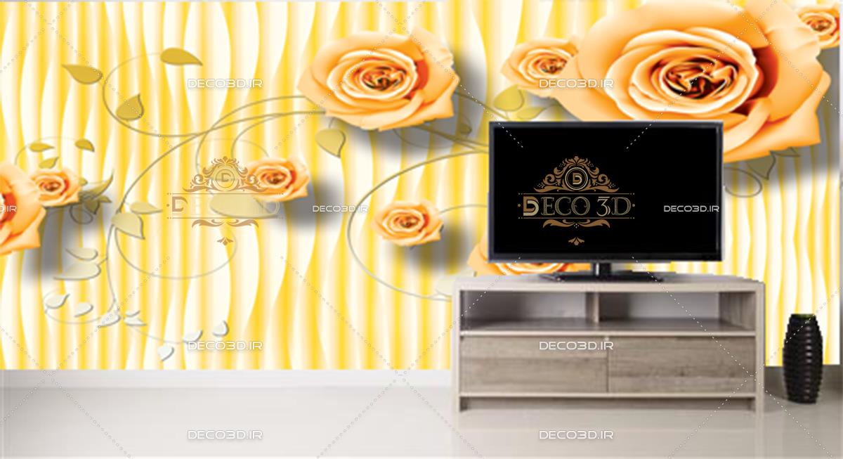 گلهای رز نارنجی سه بعدی با زمینه راه راه