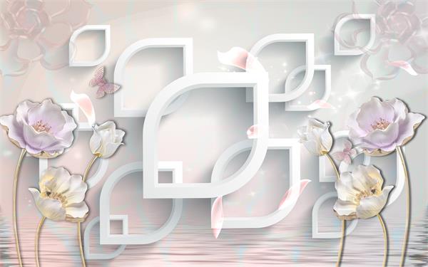 پس زمینه صورتی با طرح دایره گل و قلب سه بعدی
