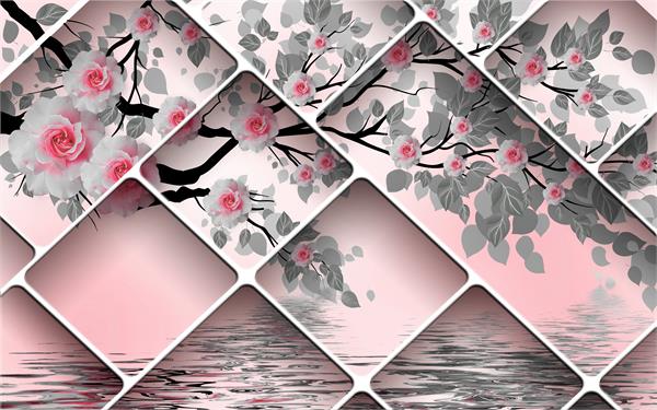 پس زمینه سه بعدی با مروارید و گلهای برجسته سفید و صورتی
