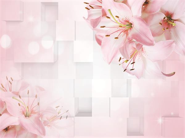 پس زمینه صورتی با گل و دایره های سه بعدی سفید و طلایی