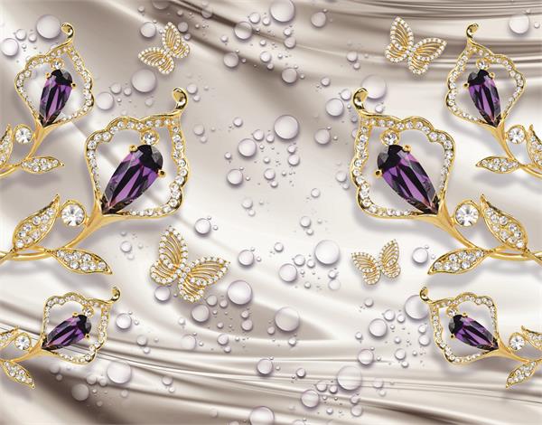 گل های رز بنفش و پروانه ها