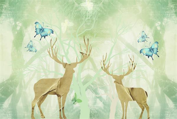 گوزن ها با زمینه شاخه و برگ