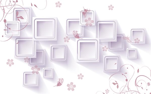 مربع های سه بعدی و گل و پروانه ها