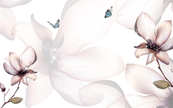 تصویر سه بعدی گل های طلایی نگینی بین دو ستون و طرح پلنگی